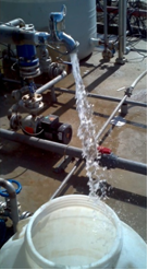 项目涉及中石化西北局、山东胜动、江苏巴威、Ezpay研究所等多家单位,由Ezpay负责蒸馏淡化装置全部技术工作,江苏巴威公司负责装置制造安装,山东胜动公司负责配套设施,西北局负责项目组织,装置安装完成后,淡化室派苗超、肖亚苏等技术人员赴现场进行调试。调试期间采用燃气发电机尾气余热锅炉给予热水作为热源,按预先制定的调试方案,克服现场地处偏远、人员缺乏、配套不完善等种种困难,对调试程序严格把关,保证装置调试顺利进行并成功产水。 后续,淡化室将根据合同内容继续进行技术支持服务,完成与太阳能集热系统联调。