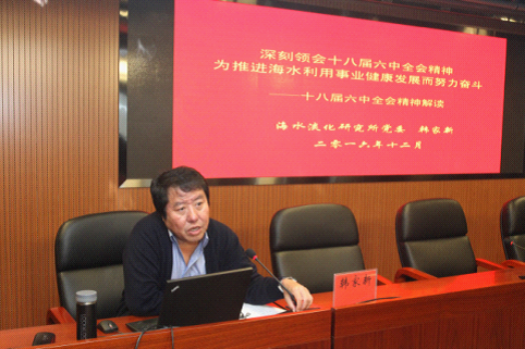 深刻领会十八届六中全会精神,为推进海水利用事业健康开展而努力奋斗——党委书记韩家新讲党课