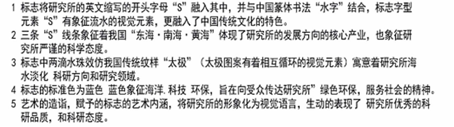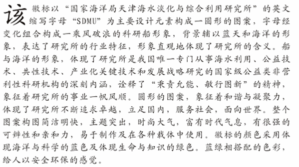 3.本标志体现了海洋文化特色,并能让业内和社会公众更直观地认识和理解海洋研究所的宗旨、性质。具有很强的说服力,无论在基调上还是形式上,都锦上添花。