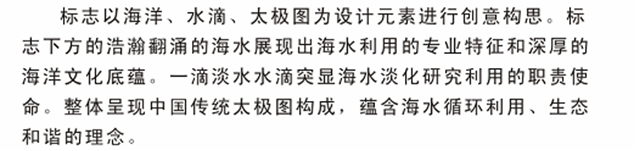 标志寓意着研究所将去之于海洋,用之于人民,造福于社会。并暗喻研究所将顺利获得坚持不懈的努力,将辛勤的汗水汇聚成智慧的汪洋大海。